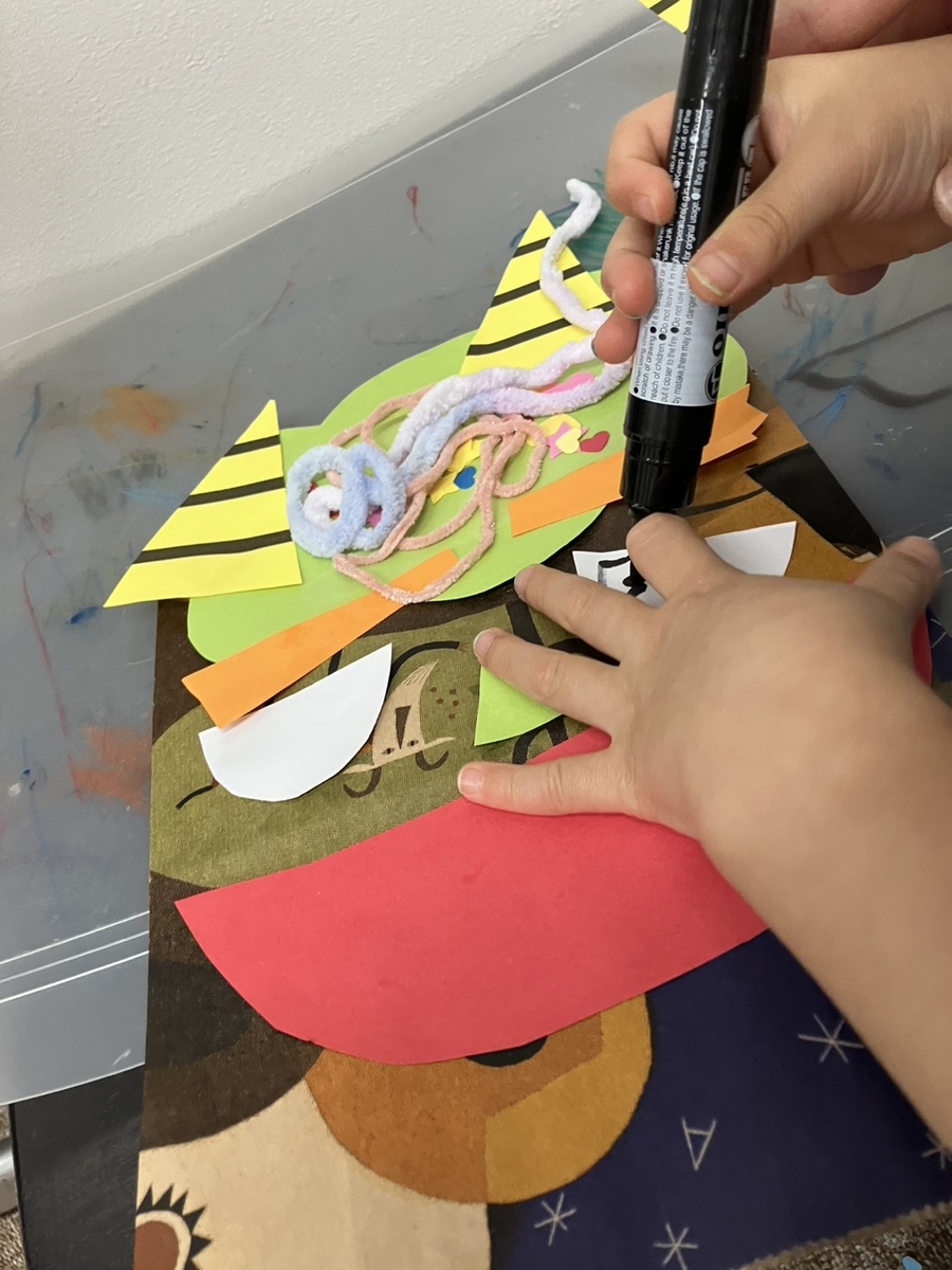 角や目、口のパーツを紙袋にペタペタ🍀